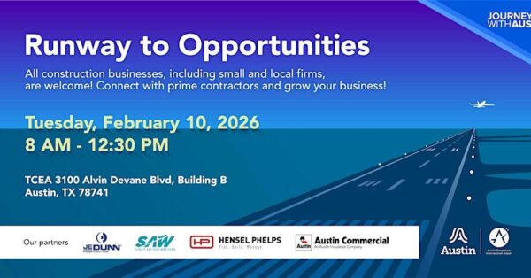 Austin-Bergstrom International Airport (AUS) invites construction to participate in Runway to Opportunities, a focused networking and information session connected to the Journey With AUS airport expansion program.